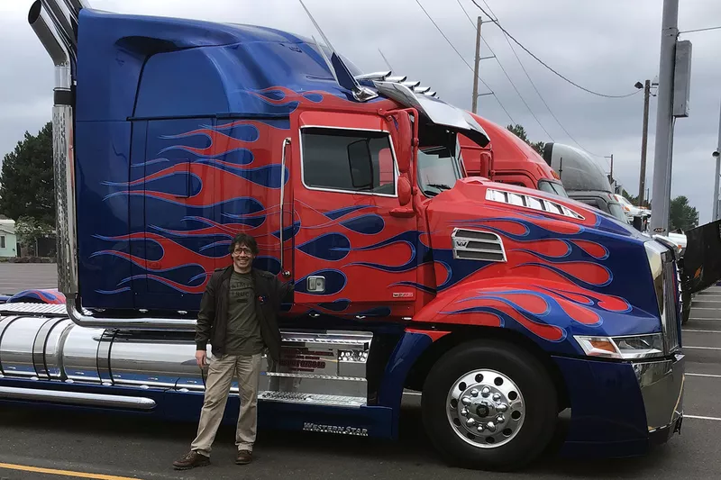 Some of the trucks manufactured by Daimler Truck have had acting roles in the Transformer movies, including Optimus Prime. Optimus Prime was at the raceway on the second day and the first photo shows Dr. Sanker next to the famous truck.